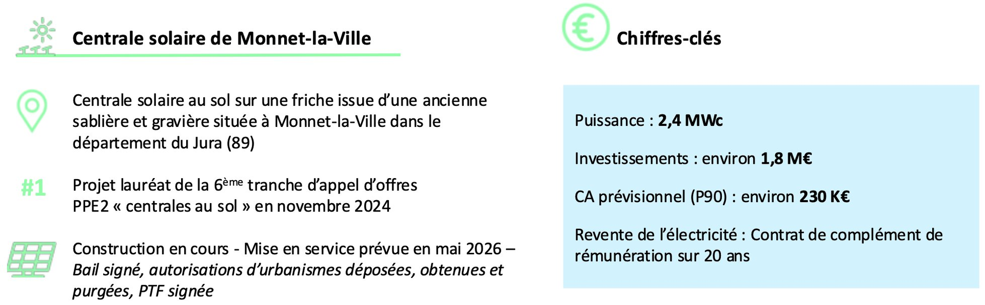 Financement d'une centrale solaire au sol située à Monnet-la-Ville (39)