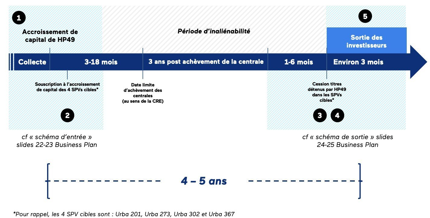 La participation des investisseurs à la présente opération de financement en actions de 3.682 K€ permettra à la société Horizon Photovoltaïque 49, dont ces derniers seront devenus ensemble les seuls actionnaires, de souscrire aux accroissements de capital des sociétés de projet :
